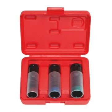 Norma: DIN 3121/ISO 1174. Pohon: Otvor pro pojistný čep a drážka pro O-kroužek. Geometrie: dlouhé provedení. Dlouhá životnost - díky výztužnému kroužku je životnost dvakrát delší než u standardních rázových nástrčných klíčů pro lité ráfky. Vyměnitelné plastové pouzdro, potažení plastem chrání hliníkové ráfky. Nástrčné klíče s barevným rozlišením. Obsah dodávky: sada rázových nástrčných klíčů 1/2 - 17, 19, 21 mm.
