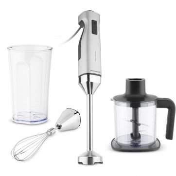 Philco PHHB6625, skutečný silák mezi ponornými mixéry. Díky kvalitnímu příslušenství zastane různé práce jako mixování, šlehání, sekání a to vždy s precizní kontrolou. Příkon 1000 W a 4 ostré čepele si poradí se všemi druhy čerstvých surovin – pro ovocné koktejly, saláty, byliková pesta, omáčky, příkrmy, salsy či těsta. Luxusní čistý design z eloxovaného hliníku ho nutí mít nejen stále při ruce, ale i na očích. Tělo z eloxovaného hliníku, unikátní design, 2 tlačítka rychlosti, plynulé ovládání otáček, čepel se čtyřmi noži.