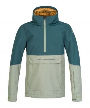 Lyžařská bunda s membránou Resstex s vodním sloupcem i prodyšností v hodnotách 10 000. Pohodlný střih bundy typu anorak má prostornou přední kapsu s klopou na suchý zip a v ní dvě integrované 2 hlavní kapsy na zip. Bunda má sněhový límec v pase a anatomicky tvarované rukávy zakončené stahováním patkou na suchý zip. Rukávy mají i vnitřní elastickou manžetu, která zamezuje vniknutí sněhu a zároveň má funkci termoregulační. Kvalitní izolace Duratherm Classic zaručuje optimální funkčnost a dostatečný tepelný komfort. Svrchní vodoodpudivá úprava DWR zajistí nenasákavost materiálu. Bunda má boční rozepínání na pravé straně, dole zakončené na patent a hlavní voděodolný půl zip zakončený do límce. Kompletně podlepené švy, regulovatelný dolní lem a bezpečnostní reflexní prvky musí být. Předurčená pro lyžování, vhodná samozřejmě i pro jiné zimní aktivity. Výbava: komfortní střih, bunda přes hlavu, boční rozepínání, prostorná přední kapsa s patkou, přinechaná kapuce s regulací, hlavní voděodolný půl zip, hlavní kapsy na zip, rukávová kapsa na skipas, anatomicky tvarované rukávy, zakončené stahováním patkou se suchým zipem, elastická rukávová manžeta, spodní kraj s regulací šířky, podlepené hlavní švy, sněhový límec v pase, vnitřní kapsa na brýle, vnitřní kapsa na zip, reflexní prvky